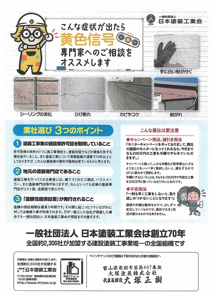 日本塗装工業会が定めた条件をクリアした事業所が認定されます。
